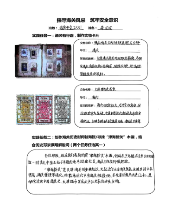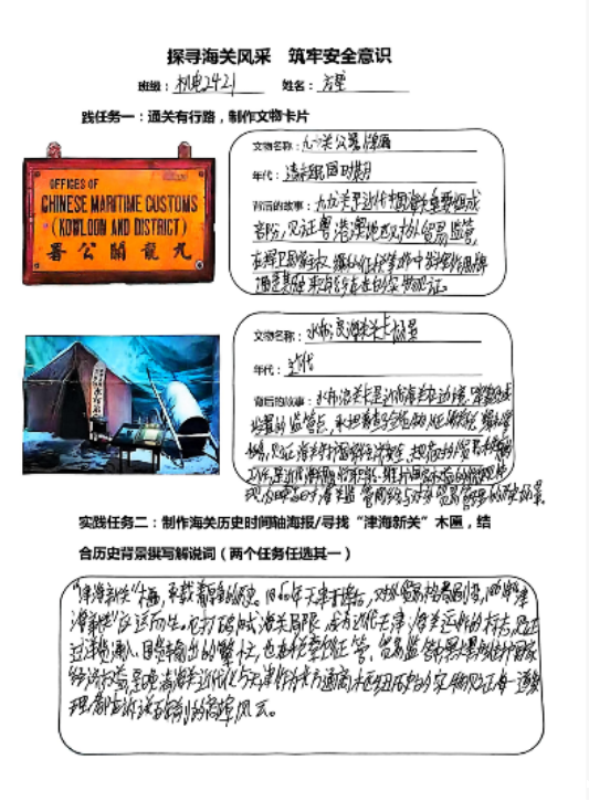 在前期充分调研与集体备课的基础上,马院老师精心设计了以 “探寻海关风采,筑牢安全意识”为主题的实践手册,引导同学们们在观察与思考中筑牢国家安全思想防线。