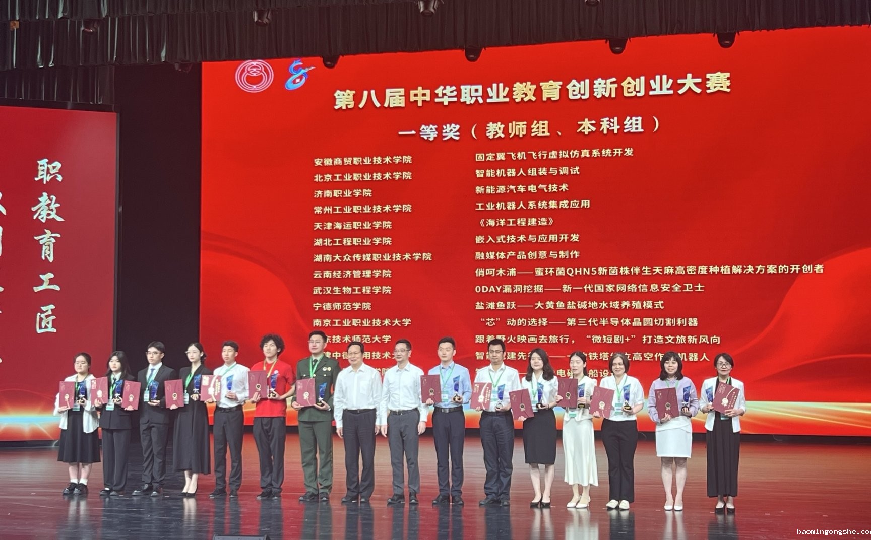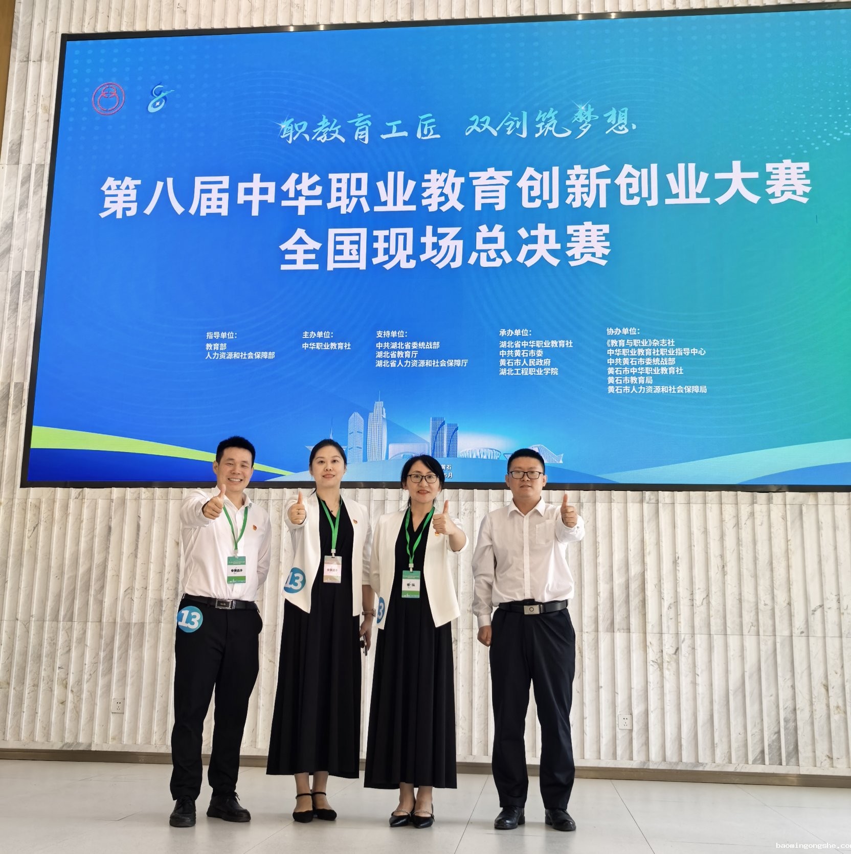 在 5 月 28 日至 30 日于湖北黄石举办的第八届中华职业教育创新创业大赛全国总决赛中,我校机电工程学院李淼、黄欢、谭颖琦、李岩磊四位教师组成的团队,凭借 “智能机器人组装与调试” 课程实训项目,在全国 166 支精英队伍中脱颖而出,一举斩获教师组全国一等奖,并在竞争激烈的装备制造大类项目中取得全国第一名的好成绩!