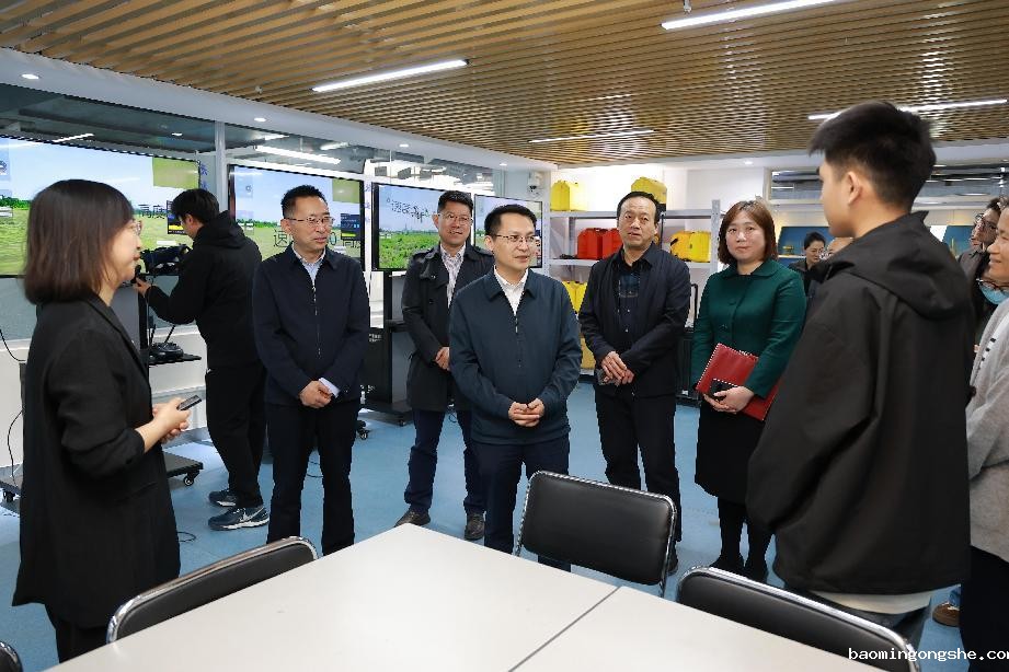 在北斗时空信息实训基地,万隆区长听取了关于北斗时空信息专业和实训基地建设情况的汇报。实地察看了国内领先的北斗卫星导航教学科研平台,深入了解该专业在教学、科研、社会服务等方面的成果,以及毕业生的就业前景。在无人机测绘与组装实训室,万隆区长与正在紧张备赛技能大赛的学生亲切交流,关切询问备赛进展,鼓励学生们刻苦钻研技能,勇攀技术高峰,并对学校创新打造的 “教学研用” 一体化建设模式给予高度评价。