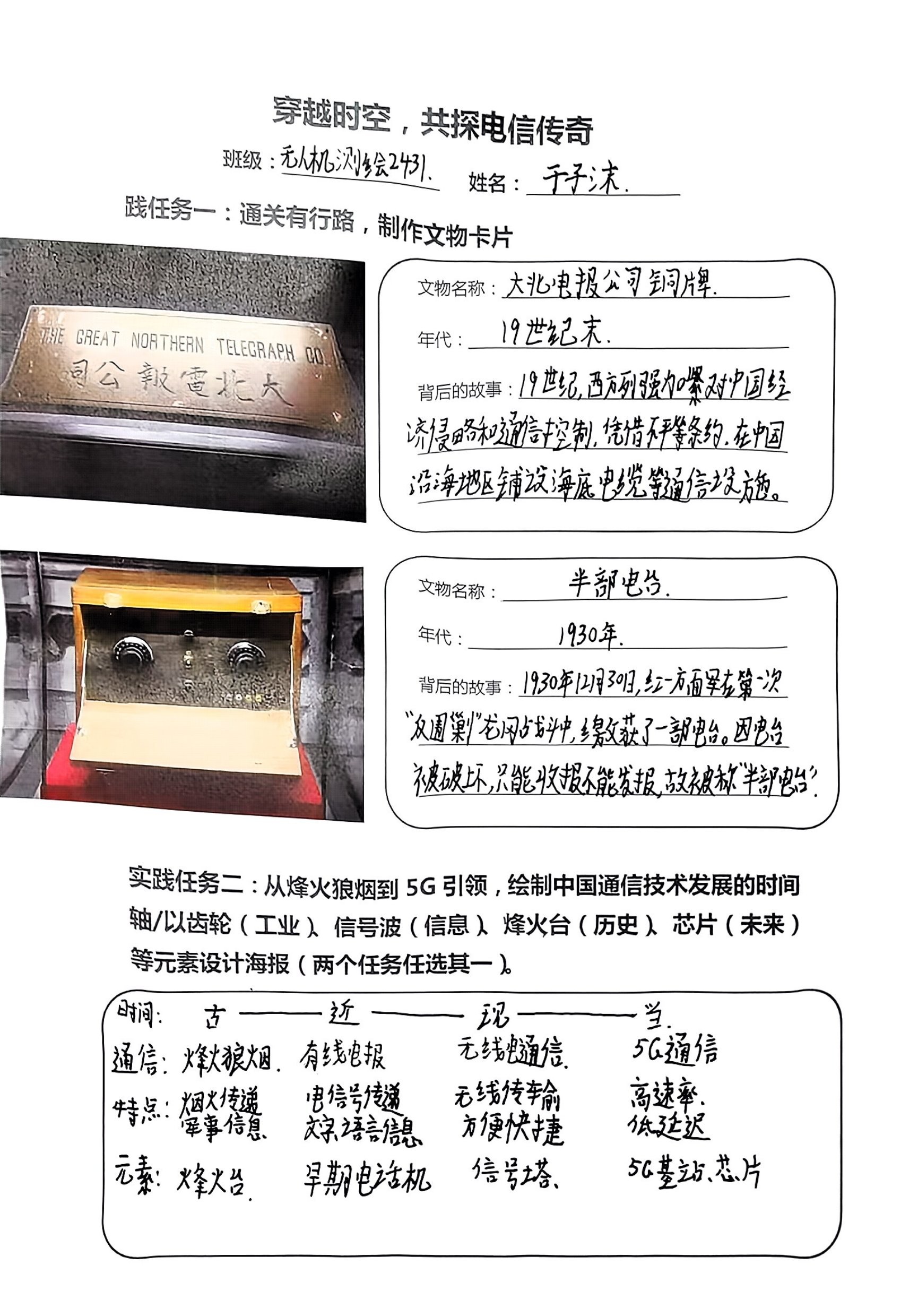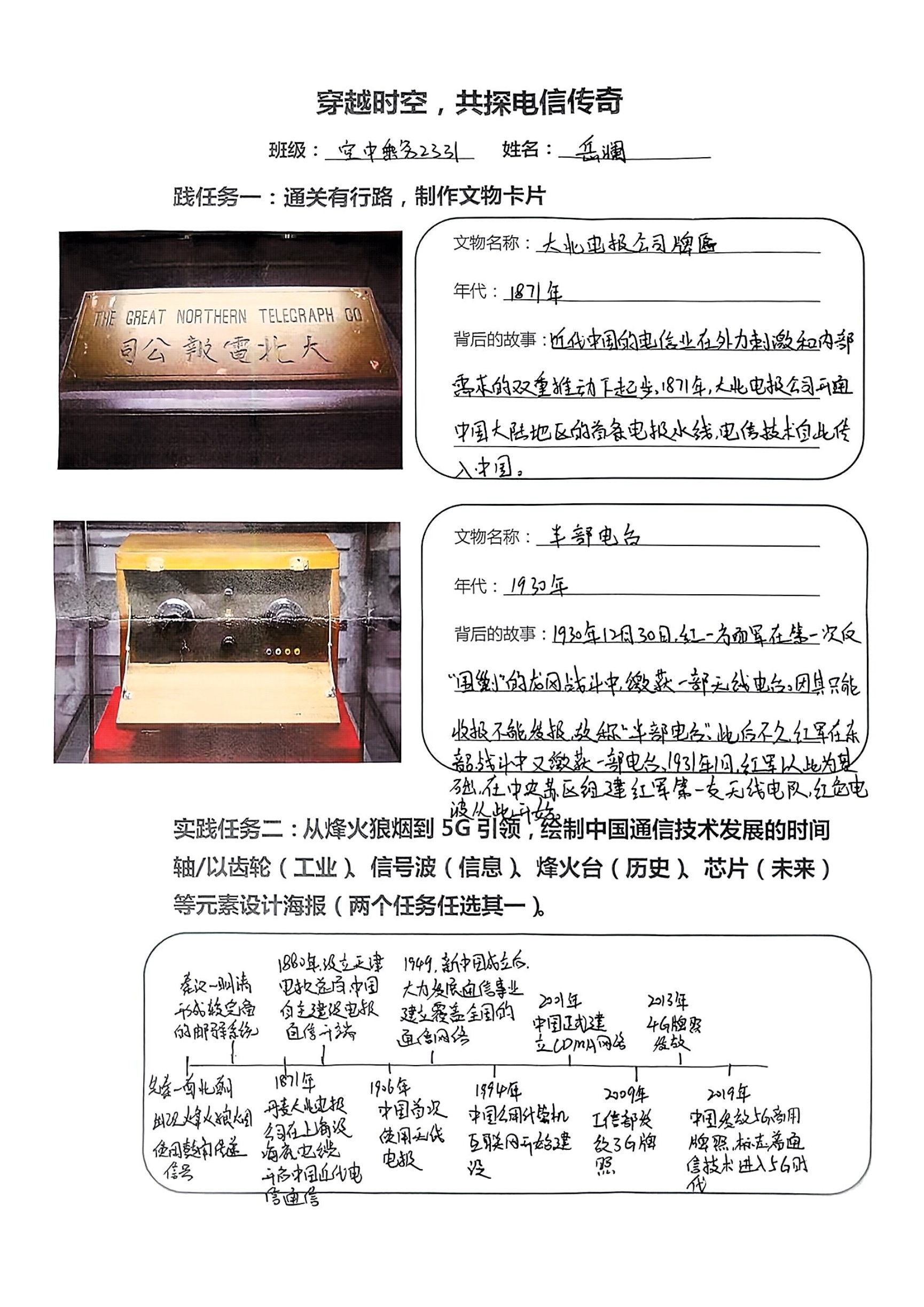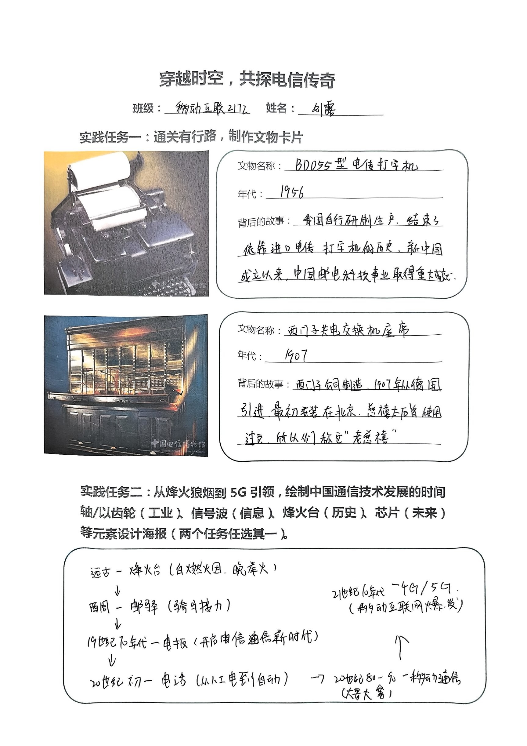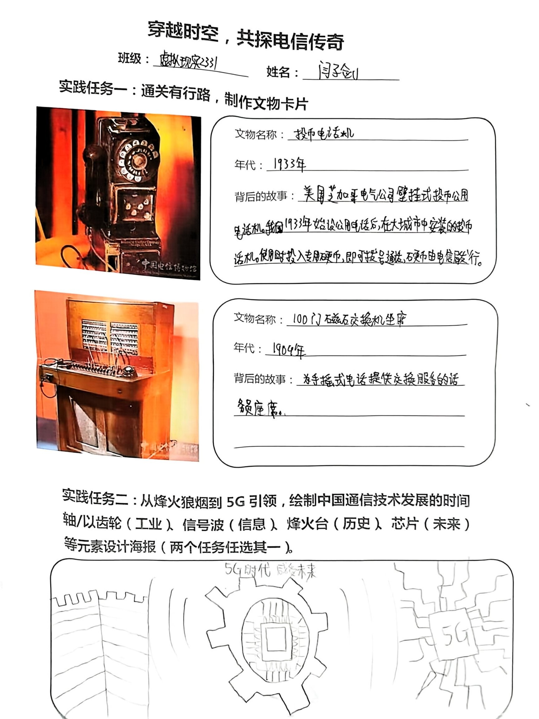 在前期充分调研与集体备课的基础上,马院老师精心设计了以 “穿越时空,共探电信传奇”为主题的实践手册。手册中设置了“通关有行路,制作文物卡片”“绘制中国通信技术发展时间轴”“以齿轮、信息波、烽火台、芯片等元素设计海报”等任务,引导同学们在观展中体会电信魅力。
