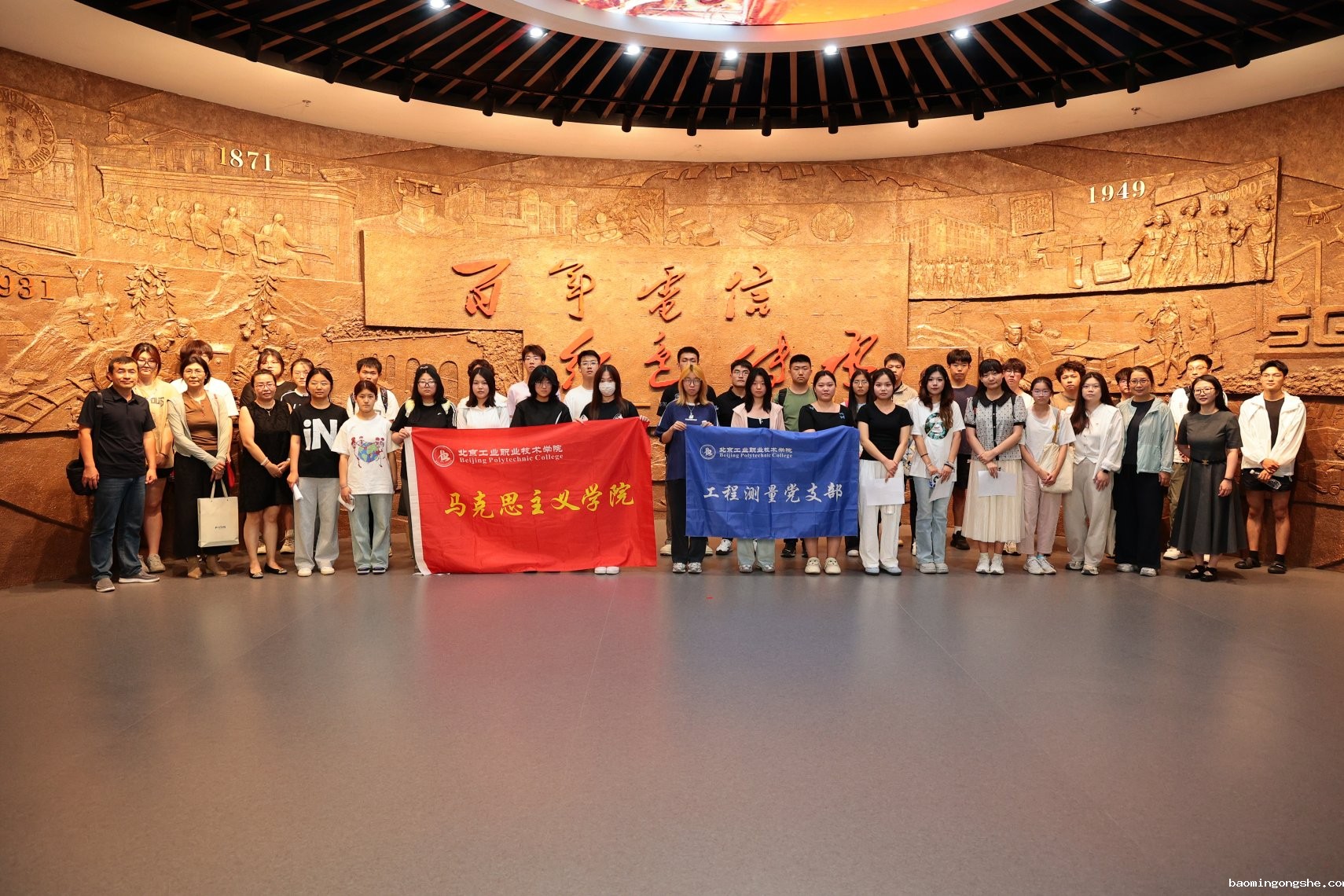 6月20日,马克思主义学院思政课教师团队联合工程测量党支部、建工学院第二学生党支部,带领50余名学生走进中国电信博物馆,开展以“穿越时空,共探电信传奇”为主题的实践教学活动。师生们通过实物展陈、文献资料与科技互动,在电信业百年奋斗史中触摸科技创新的时代脉搏,厚植科技报国的使命担当。